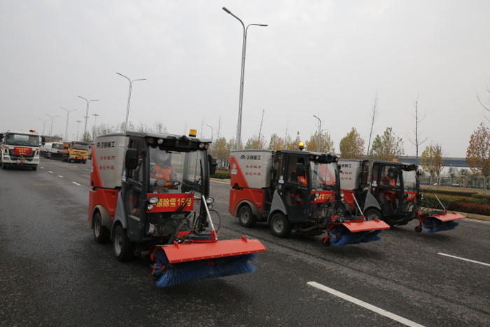 11月28日15时,郑州市中原区丹水大道,25套扫雪机、撒布机、除雪车等排列整齐同时启动,近1公里的车队长龙缓缓前进,在轰鸣声中,各类清雪机械车辆大展清雪技能。
