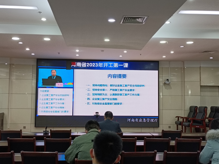 023年2月6日,郑州市组织安委会成员单位及辖区内企事业单位集中收看河南省2023年“开工第一课”专题讲座。