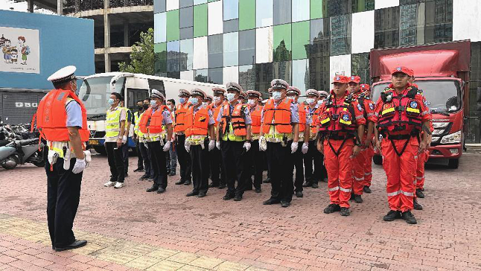 险情发生后,各单位第一时间启动防汛应急救援行动预案,金水区综合应急救援大队队长宋帅迅速组织队员展开行动,调派水陆两栖车两辆、工程抢险车、2400m³/h排涝车、3200m³/h排涝车以及4200m³/h排涝车各一辆,无人机、重装救生衣、抛投器等专业救援装备前往灾害地点实施救援。