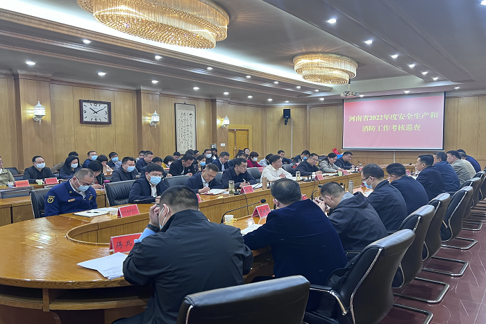 省考核巡查组组长、省应急厅副厅长孟庆勇首先结合管城区历年典型事故案例进行警示教育,就做好下一步安全生产工作进行强调;随后,区委副书记、区长丁晓永从压实党政领导职责、明确安全生产责任,创新安全监管机制、强化风险隐患排查治理、完善社会防控措施、提升消防安全宣传等方面,对2022年度全区安全生产、消防工作开展情况进行汇报;最后,省考核巡查组现场查阅了区政府及各相关部门安全生产工作资料。