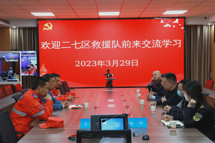 二七区应急救援中心到金水区综合应急救援大队进行交流学习,并在指挥中心进行交流座谈。