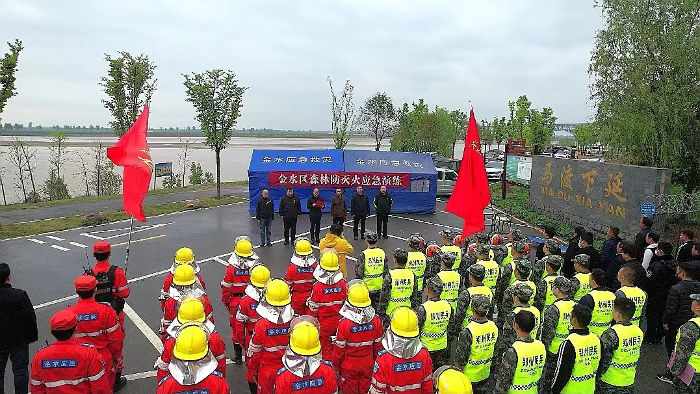 4月4日上午,金水区在黄河马渡下延开展2023年森林防灭火应急演练。区政府二级调研员潘杰昌、区森防办主任、应急局局长邵金安、兴达路街道办事处主任邹会芳及区人武部、郑州市自然资源和规划局金水分局、相关街道办事处负责同志出席观摩,3支应急救援队伍共90余人参加演练。
