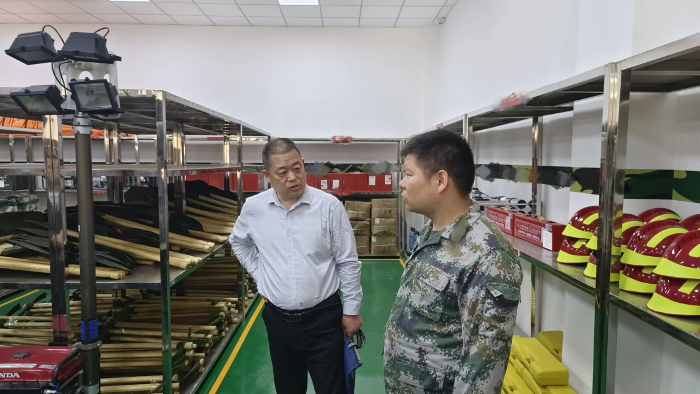 席建明每到一个队伍办公场地,先后查看了队伍的物资装备仓库、日常训练室、会议室等场所。