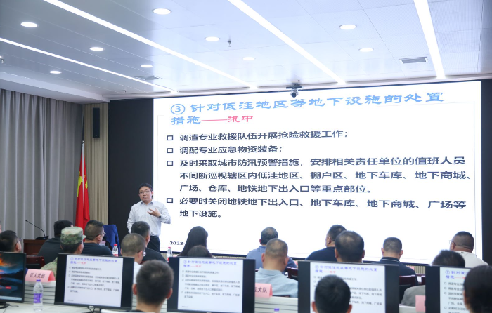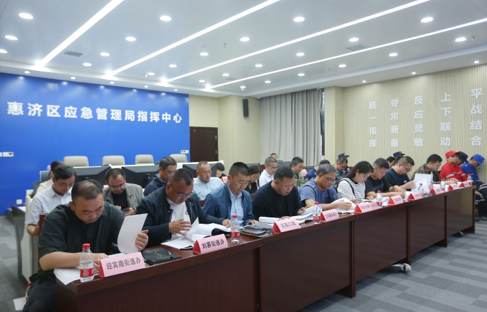 演练开始前,由河南省应急管理专家揣小明教授讲授《惠济区防汛应急实务》,从防汛应急预案编制、汛前/汛中防汛应对处置措施、灾害信息员使用手册解读三个方面对我区防汛工作进行梳理讲解。本次演练模拟郑州市遭遇极端异常天气现象,全区大部分地区遭遇短历时集中持续性暴雨袭击,造成我区城市发生内涝,隧道被淹,车辆、人员被困,城市基础设施多处受损;多个小区地下车库被淹、人员被困;江河水库水位快速上涨,黄河水位持续上涨,黄河堤坝出现险情,黄河滩区古荥镇黄河桥村和孙庄村人员急需转移安置。