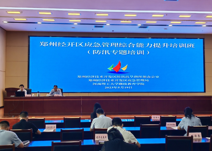 为切实做好今年经开区防汛抗旱工作,进一步提升我区干部职工对防汛工作形势的思想认识,提升防汛业务能力,5月19日上午,经开区应急管理局在管委会东配楼三楼会议室举办以防汛为专题的应急管理综合能力提升培训班。区直各部门、经开综保区、国际物流园区分管负责人,各办事处分管负责人、应急办主任,公安分局、交警十二支队、消防救援大队、城东供电公司、郑州经开水务发展有限公司、经开投发、建投公司、昇阳公司、新丝路公司、郑州移动经开分公司、郑州联通经开分公司、郑州电信经开分公司分管负责人,20家规模以上工贸企业安全负责人、20家建筑企业安全负责人、20家危化企业安全负责人以及应急管理局全体人员等参加了培训。