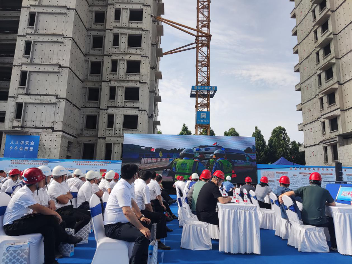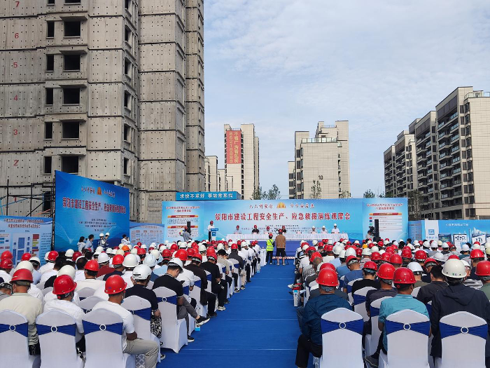 为深入开展安全生产月活动,紧紧围绕“人人讲安全,个个会应急”这一活动主题,6月7日上午,荥阳市召开建设工程安全生产及应急救援演练观摩会,深化安全生产工作,力促荥阳市建筑市场管理工作再上新台阶。副市长李智俊,荥阳市住建局、市应急局主要负责同志,市住建局相关人员、各建筑施工企业负责人、安全经理、在建工程项目的项目经理、安全员、监理人员等约200人参加。