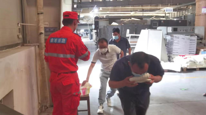 金水区综合应急救援大队组织河南新华印刷集团开展防汛抢险和疏散逃生应急预案演练