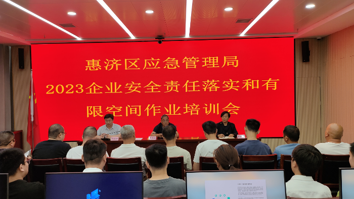 7月14日上午,惠济区应急管理局组织召开惠济区2023企业安全责任落实和有限空间作业培训会议。会议通过播放宣传警示教育片,对企业安全主体责任落实情况和有限空间作业安全进行了培训,为参会人员发放了《企业主要责任人履行安全生产职责应知应会基础知识》,认真分析存在问题,建立健全工作机制,压实安全生产责任,坚决做好全区有限空间安全防范工作。