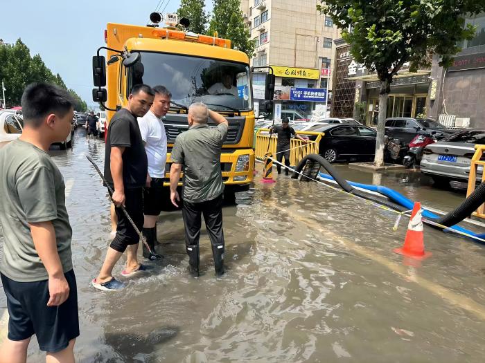 汛情就是命令,防汛就是责任。郑东新区应急管理局党支部坚持党建引领,做实“党建+防汛”,把防汛救灾第一线当做为群众办实事的主战场,在防汛工作中充分发挥基层党组织战斗堡垒作用和党员先锋模范作用,保障人民群众生命财产安全。7月31日中午,通过郑东新区应急指挥调度平台发现敬业路路面积水情况严重,区防办立即安排救援大队队员第一时间前往白沙镇进行抽排工作。