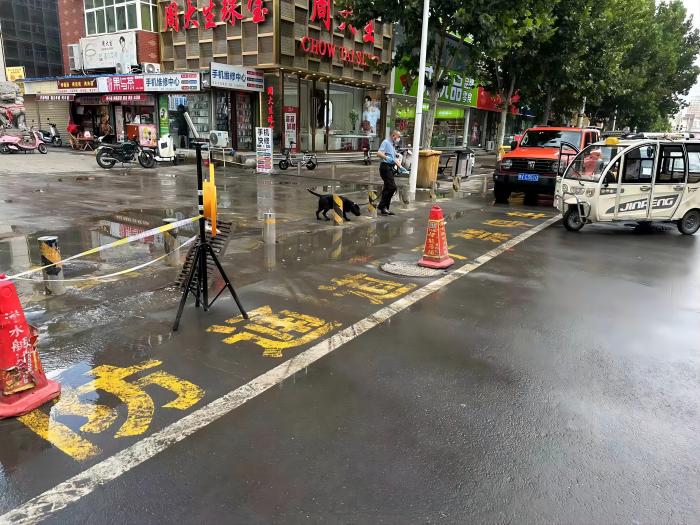 排涝车到达现场后,救援队员详细勘察积水路段情况,立即在积水路面附近拉起警戒线,放置警示牌反光锥,寻找合适的作业点,展开抽排工作。该路段车流量较大,积水严重影响车辆和行人出行并造成一定的危险。在抽排过程中,救援队员对过往行人及车辆进行疏导绕行。经过2小时排涝作业,该路段积水完成抽排险情成功解除,道路恢复畅通。