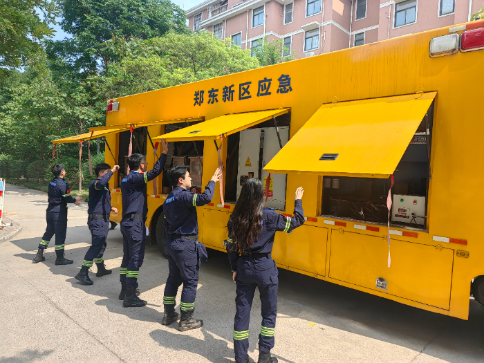 5月27日下午,郑东新区应急管理局联合郑东供电公司、豫兴路办事处、郑州供电公司不停电作业中心、郑州筑颐物业有限公司在宁馨苑小区共同开展电力防汛应急抢修综合演练。本次演练共设置预警响应、紧急避险、应急保供电、临时供电恢复四个科目。